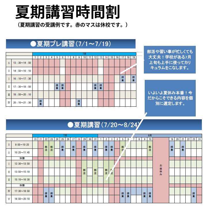 ③大会時期の8月上旬はあらかじめ夜コマをセット、7月上旬も活用